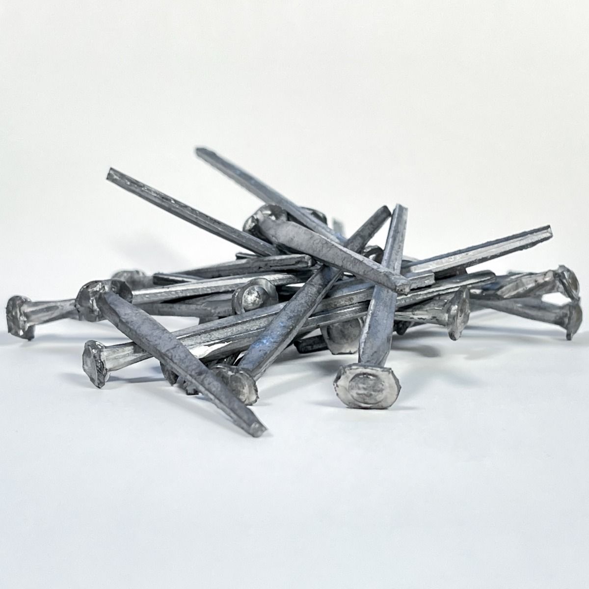 All our nails are made from flat sheets of steel. Our Masonry, Flooring and Common nails are made with a high-carbon steel. All others are made with low-carbon steel. Some nails are galvanized after cutting. For a more authentic look, the Decorative Wrought Head nail is given a black oxide finish.
