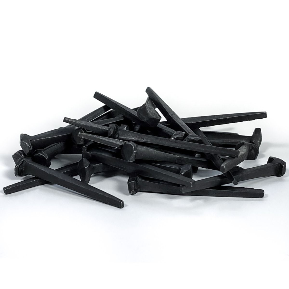 Manufactured 'cut nails' were first introduced in the late 1700s. All our nails are made on original machines made in the 19th and earl 20th century and are the same nails made during these time. These machine-produced nails were manufactured much more efficiently than their hand-forged predecessors. Our Decorative Wrought Head nails are designed to mimic the look of hand forged nails on the 18the century and are sold with a black oxide finish to complete the look of oil-dipped forged iron.